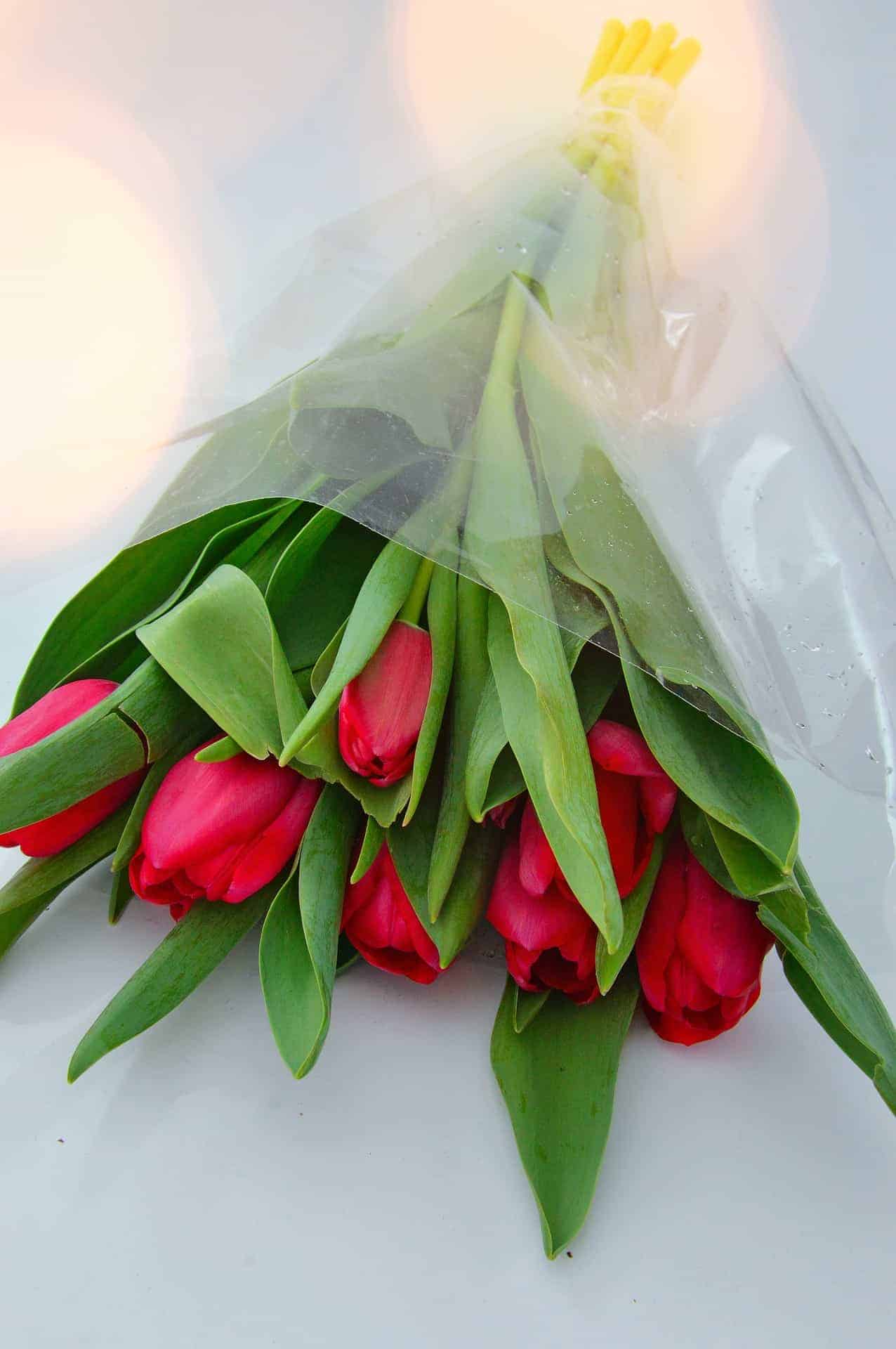 Bouquet de 10 tulipes, couleurs au choix ou selon l’inspiration du fleuriste.