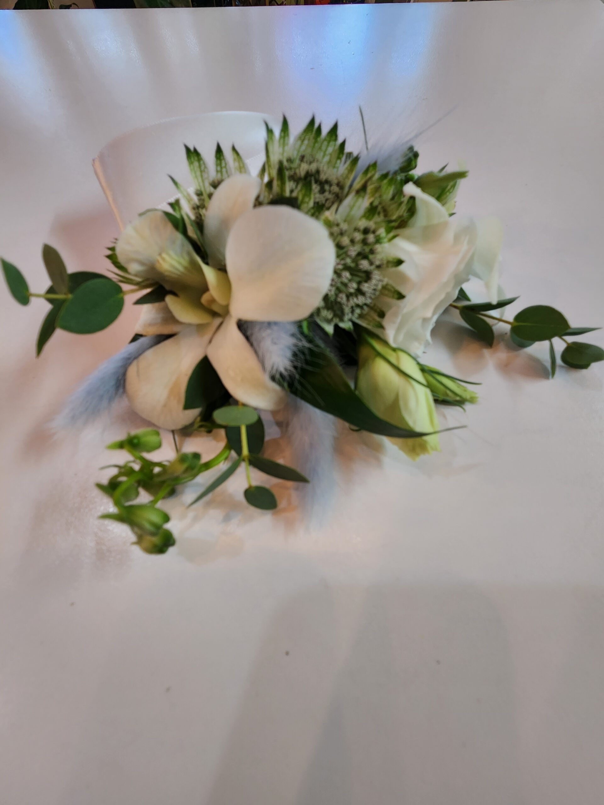 Bracelet de fleurs blanches et finition blanche.