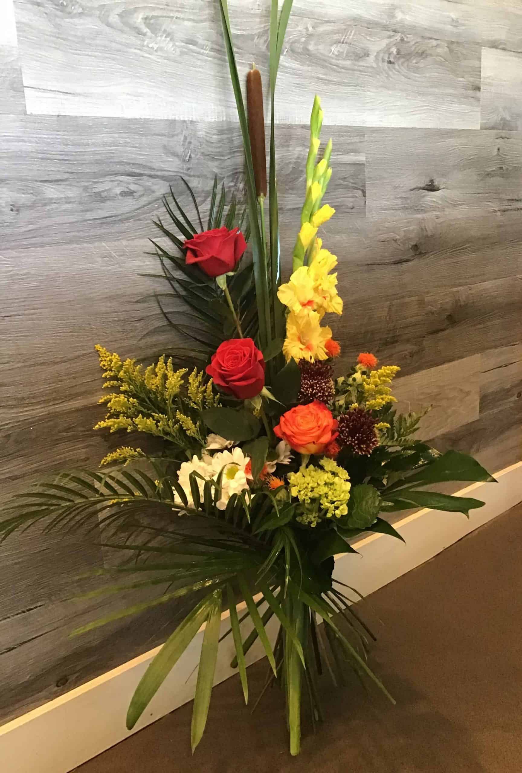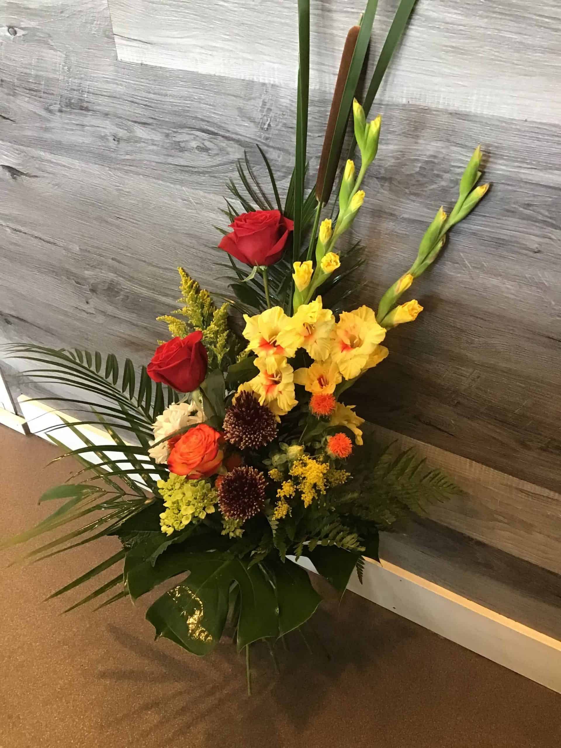Gerbe de présentation au teinte de jaune, orangé et  rouge