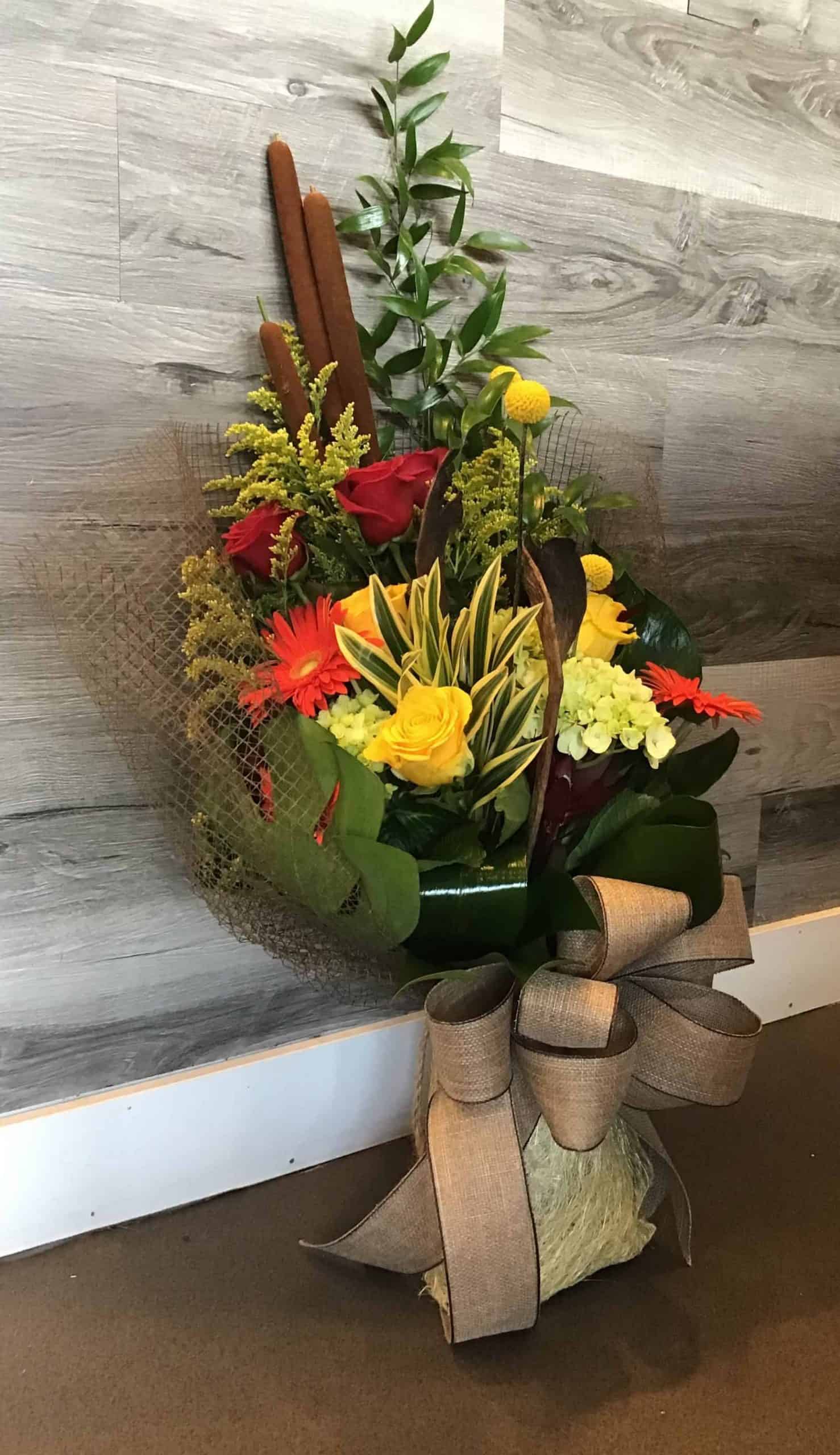 Gerbe de présentation au teinte de rouge, orangé et jaune