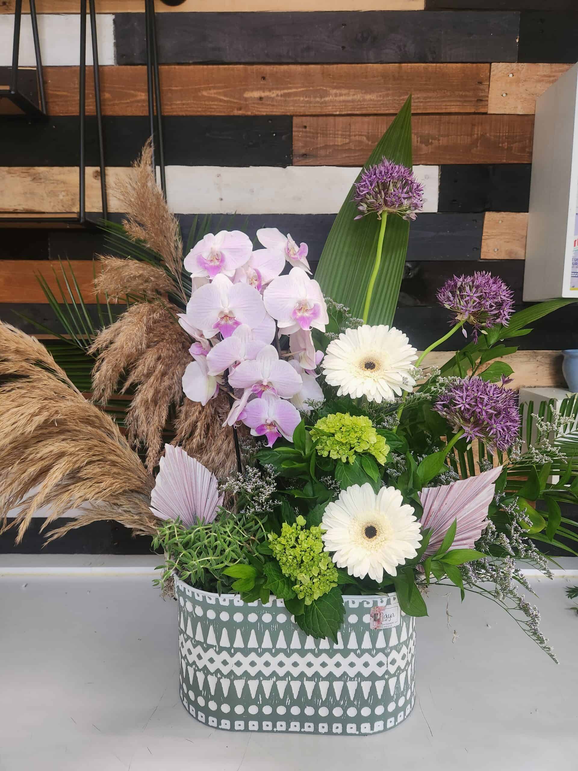 Certaines fleurs, feuillages et/ou pot peuvent différer selon la saison et la disponibilité des produits.