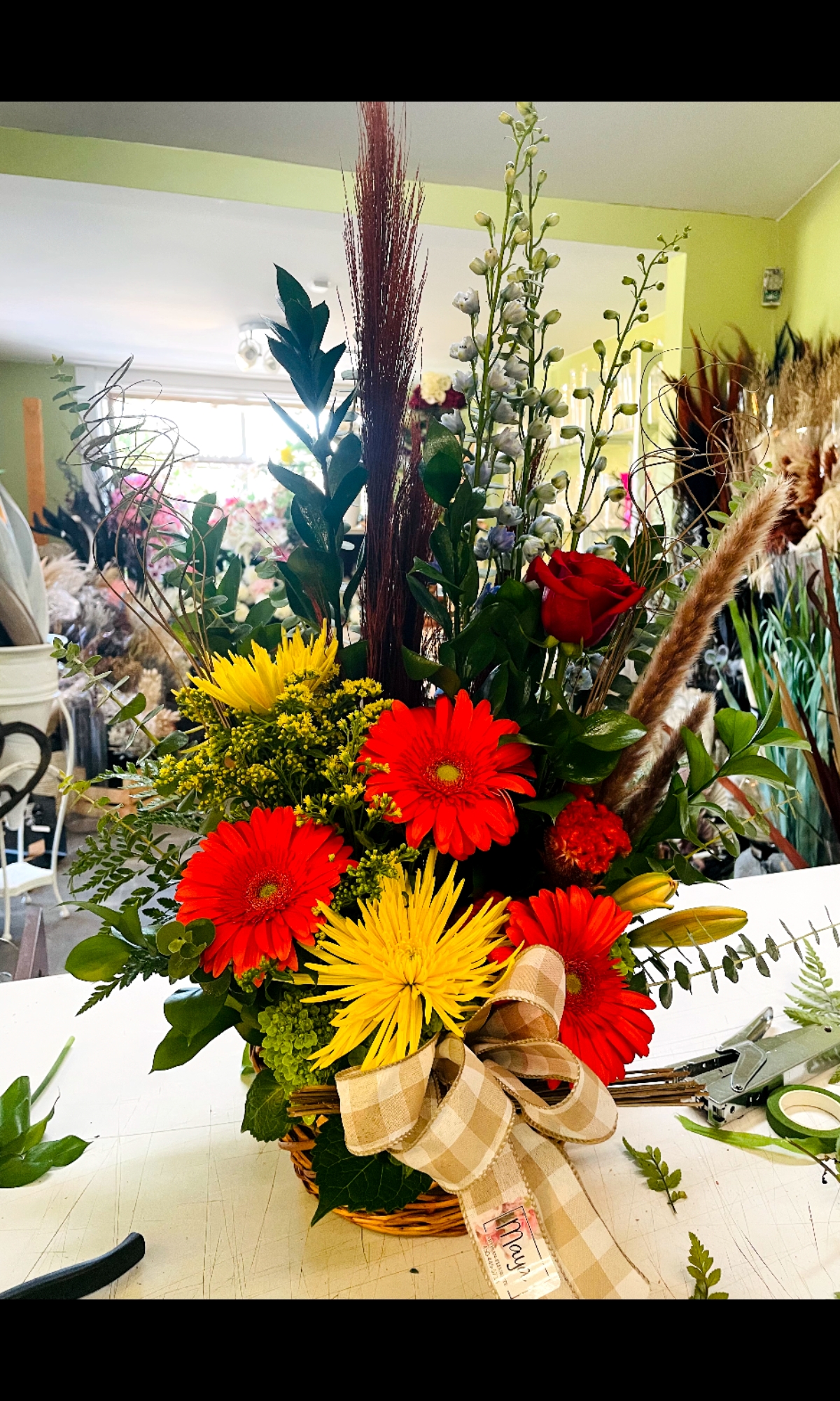Arrangement dans un panier.