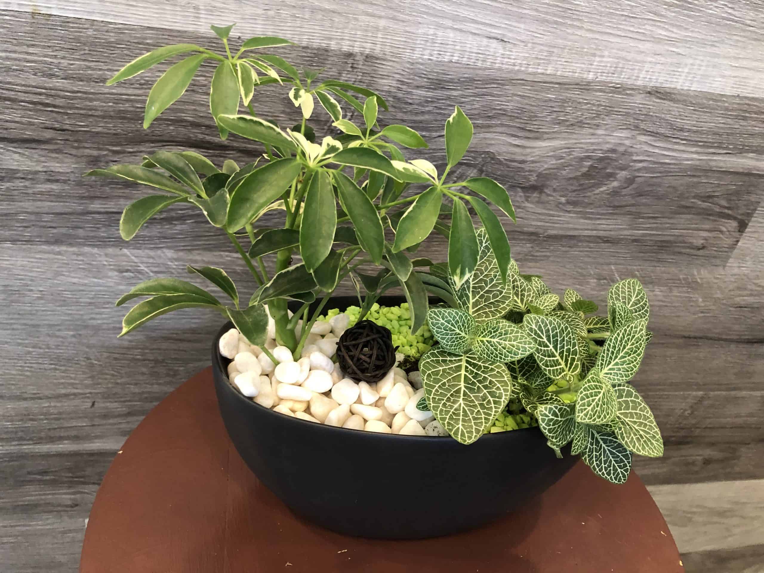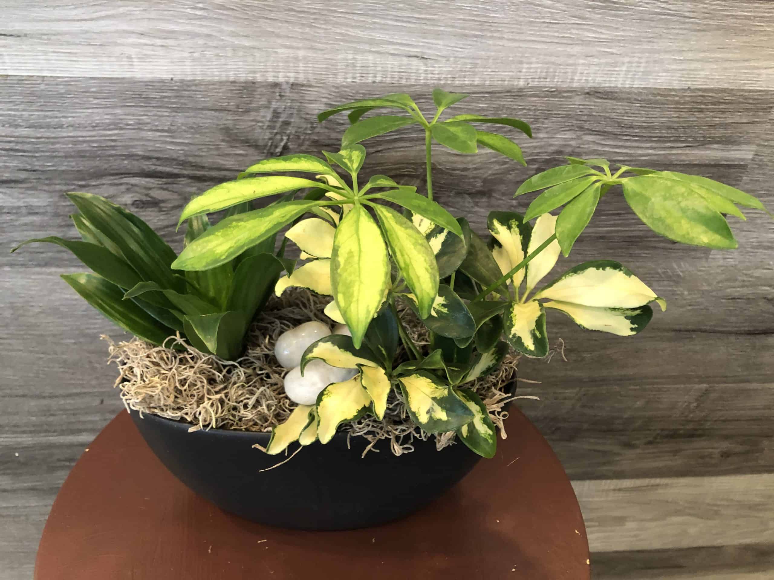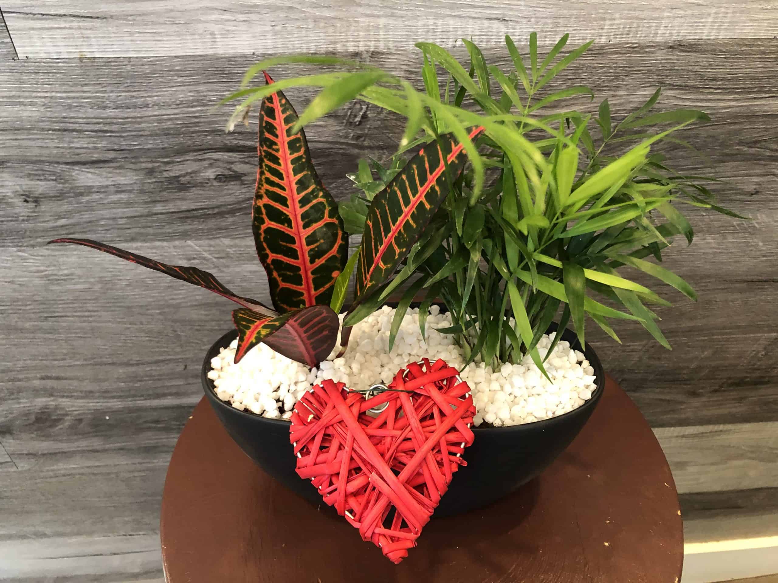 2 Plantes tropicales  naturelles dans un contenant demi-lune
